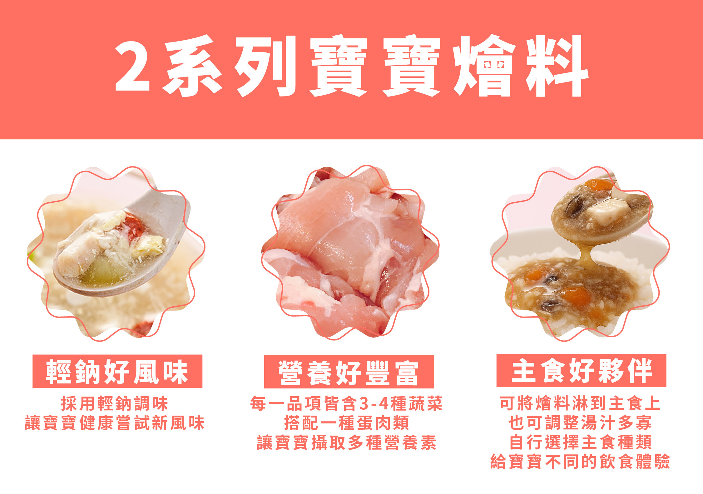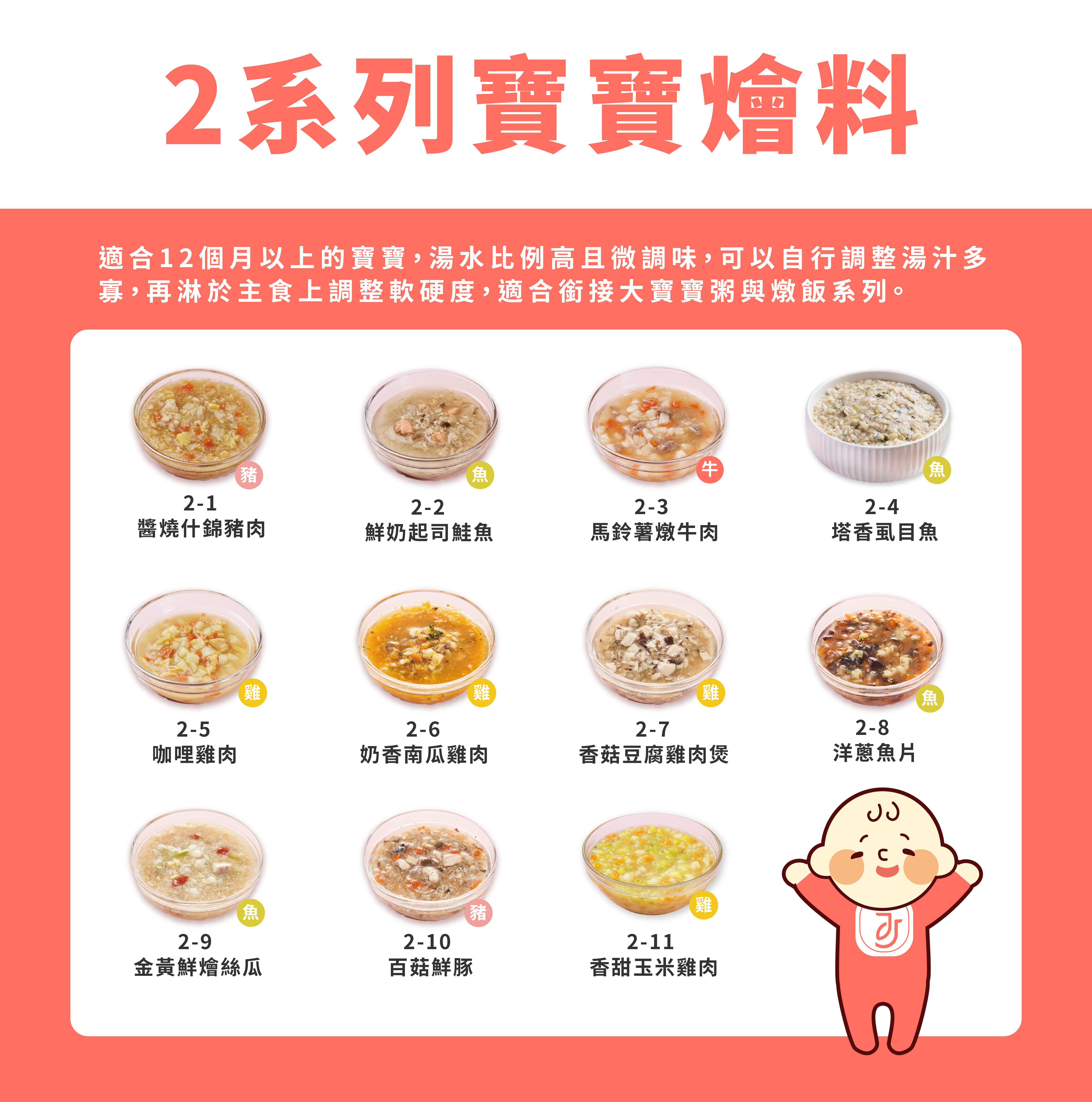 ✅ 5款精選寶寶燴料,豬、雞、魚多元蛋白質一次購齊
