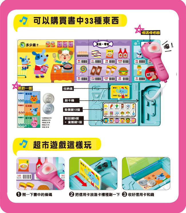 .内容包含刷卡機和條碼掃描器,12個售價鍵及6個遊戲鍵