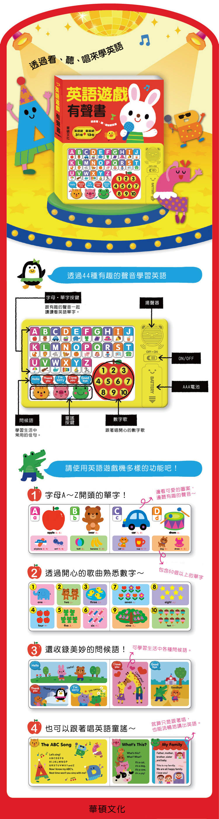 .内容包含有趣的聲音歌曲和童謠,31個英語鍵及13個童謠鍵