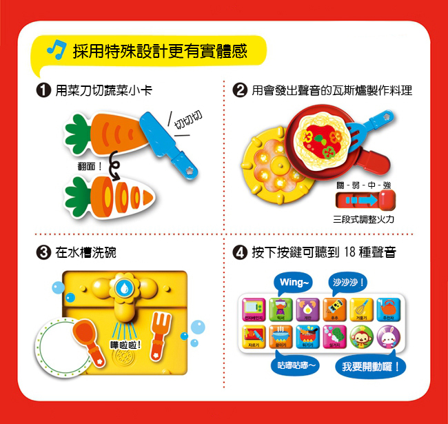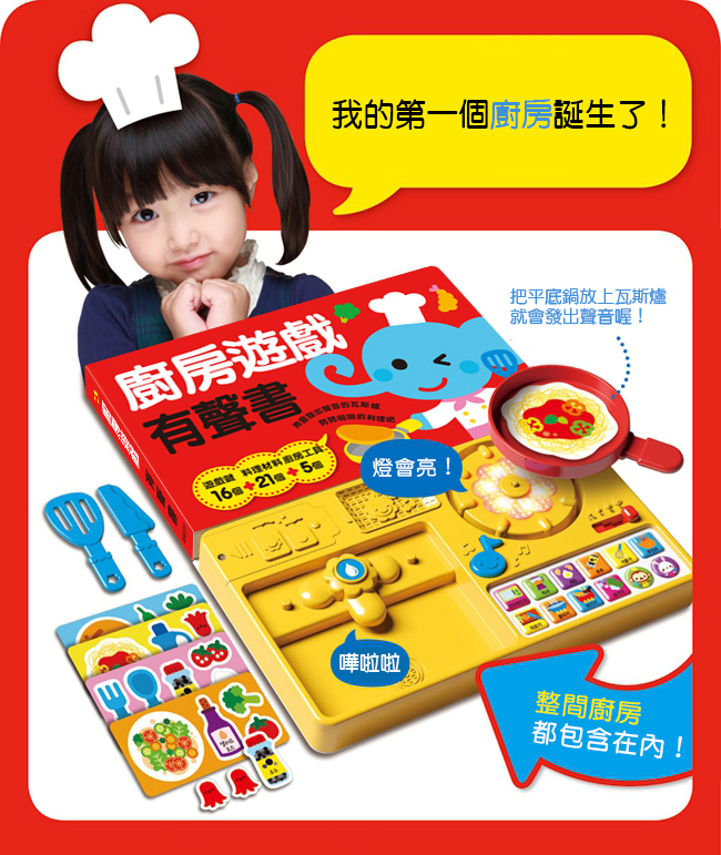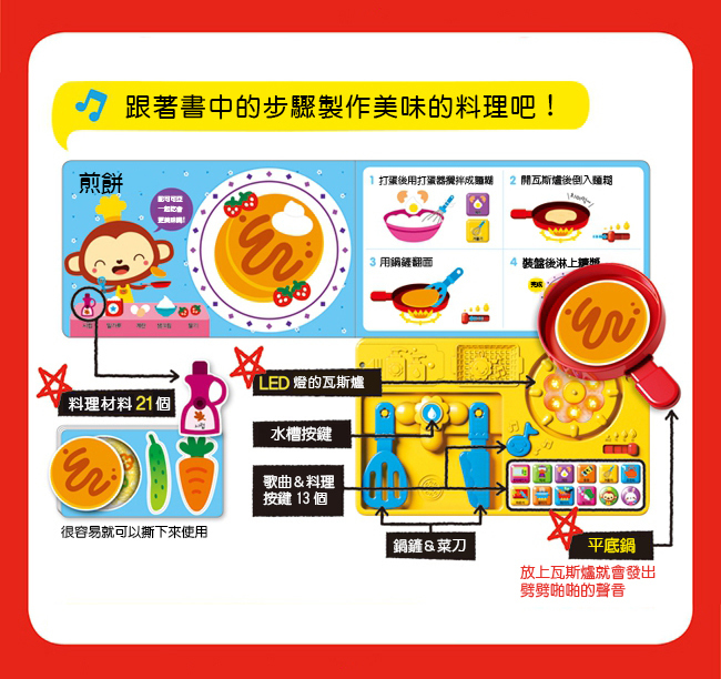 .播放快樂的童謠,跟著書中的步驟開心地製作料理吧!