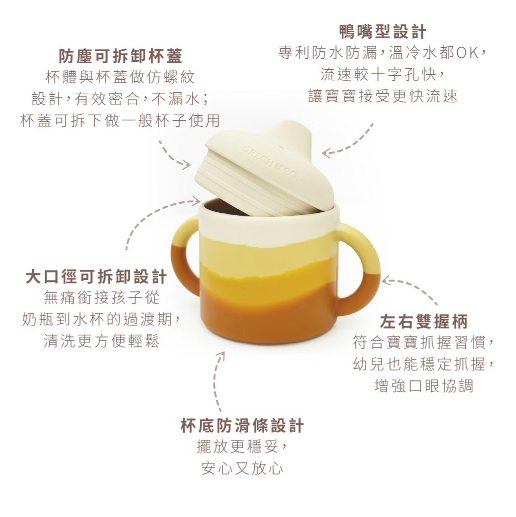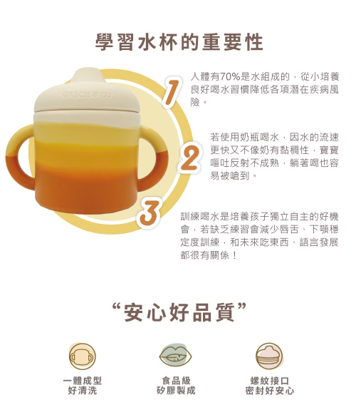 Grech and Co Grech&CO 矽膠學習水杯,100% 德國LFGB 級矽膠製成,寶貝練習喝水的第一個水杯, 鴨嘴型矽膠一體成型設計,清洗方便貼合寶