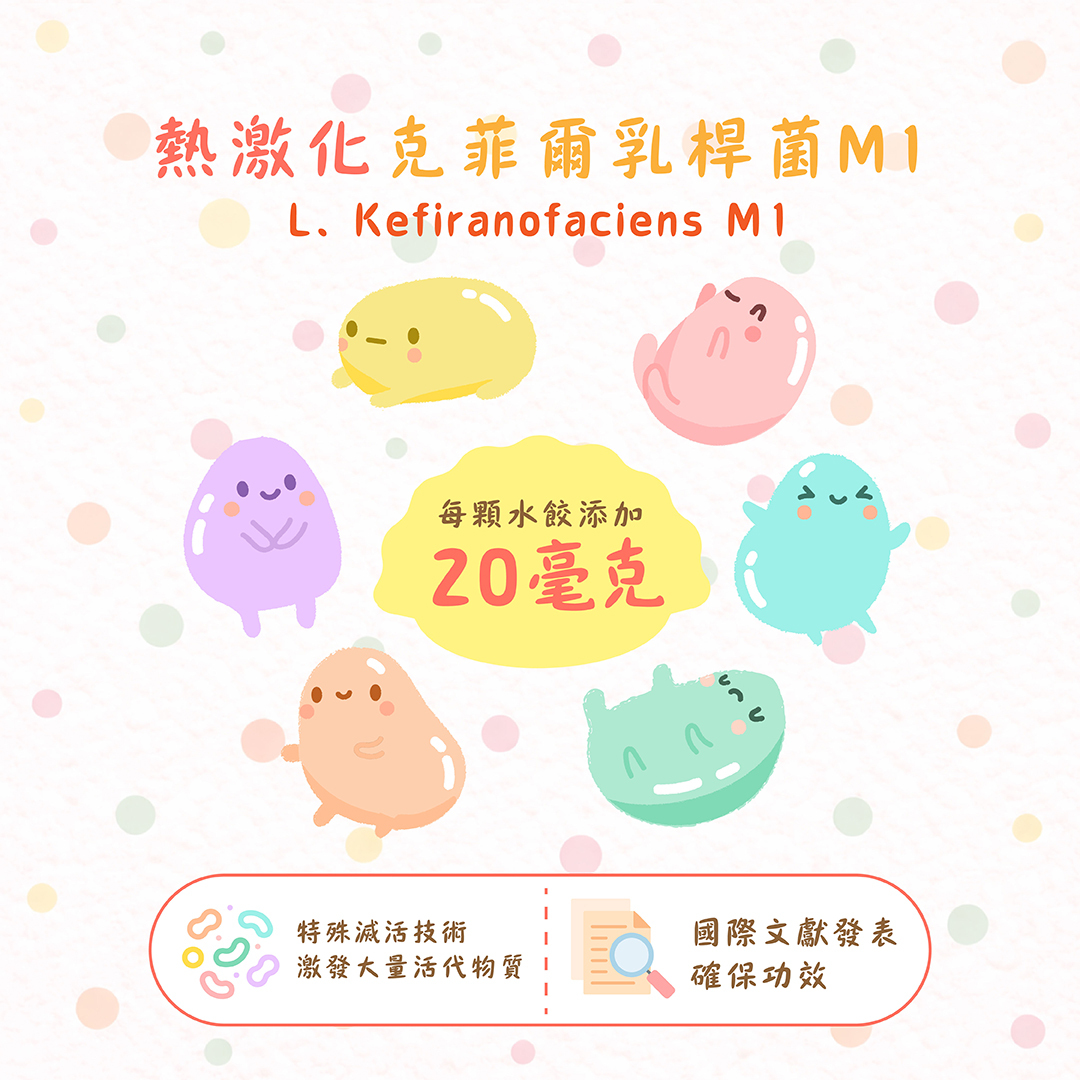 *全台首創-每顆水餃含有熱激化克菲爾乳桿菌M1 20mg