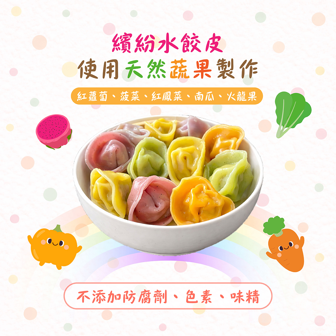 *水餃皮使用天然蔬果製作 (顏色會因天然蔬果而有所差異,請放心食用)