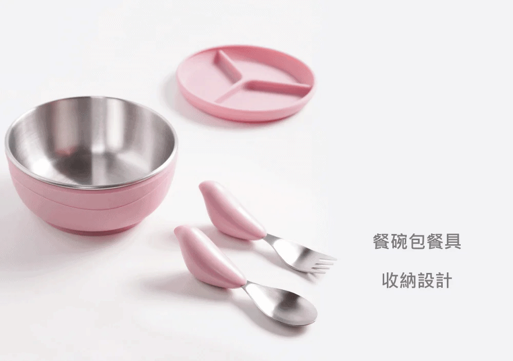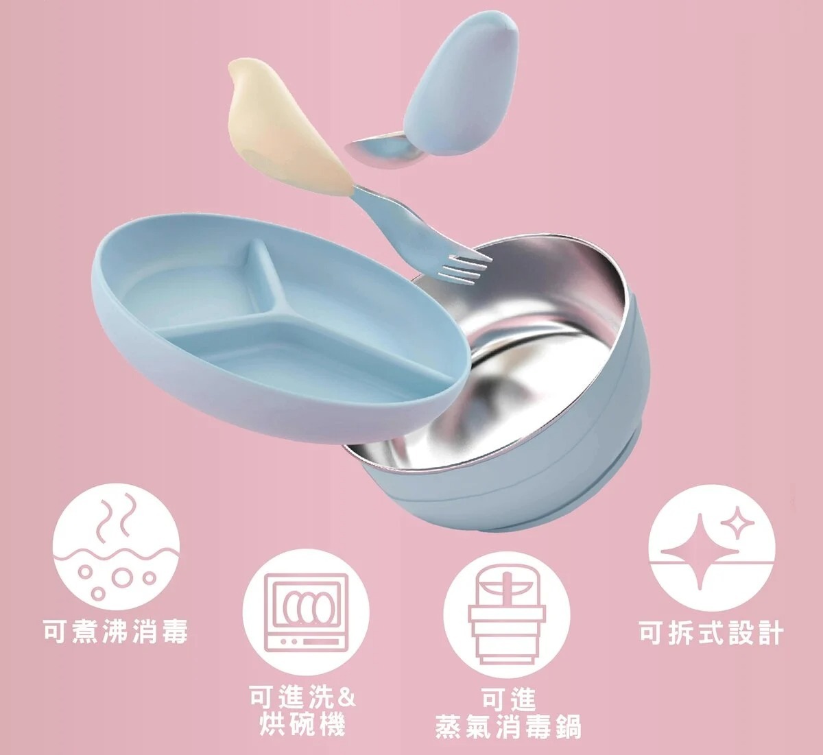 ·學習碗x1 (不鏽鋼內碗+矽膠防燙外碗)