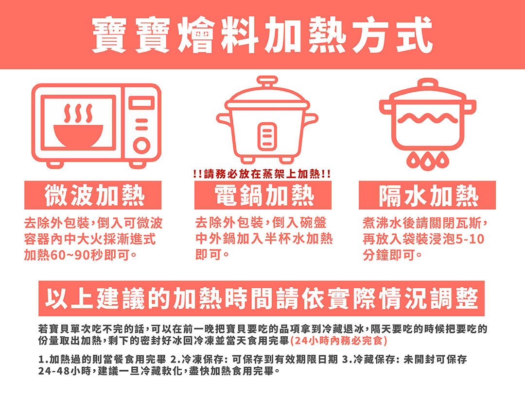 *燴料不含主食,可自行準備主食或選購寶貝米飯、寶貝義大利麵唷。